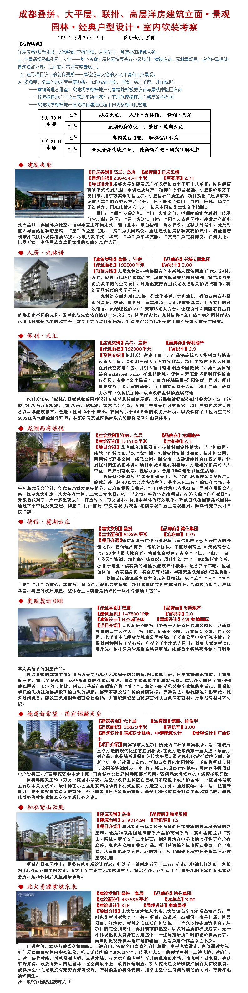 21年3月20-21成都叠拼、大平层、联排、高层洋房考察