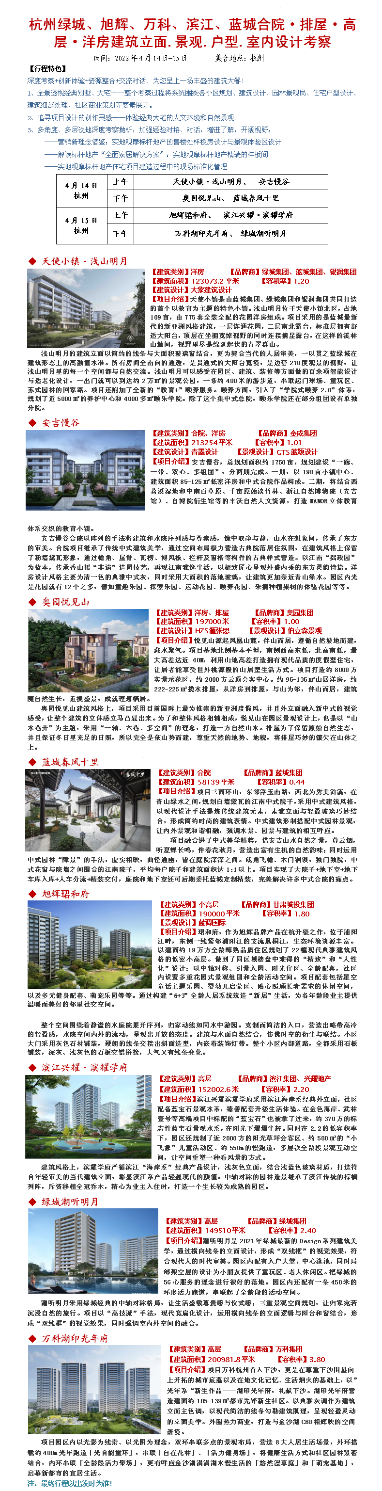 22年4月14-15日杭州绿城、旭辉、万科、滨江、蓝城建筑立面.景观.户型.室内设计考察