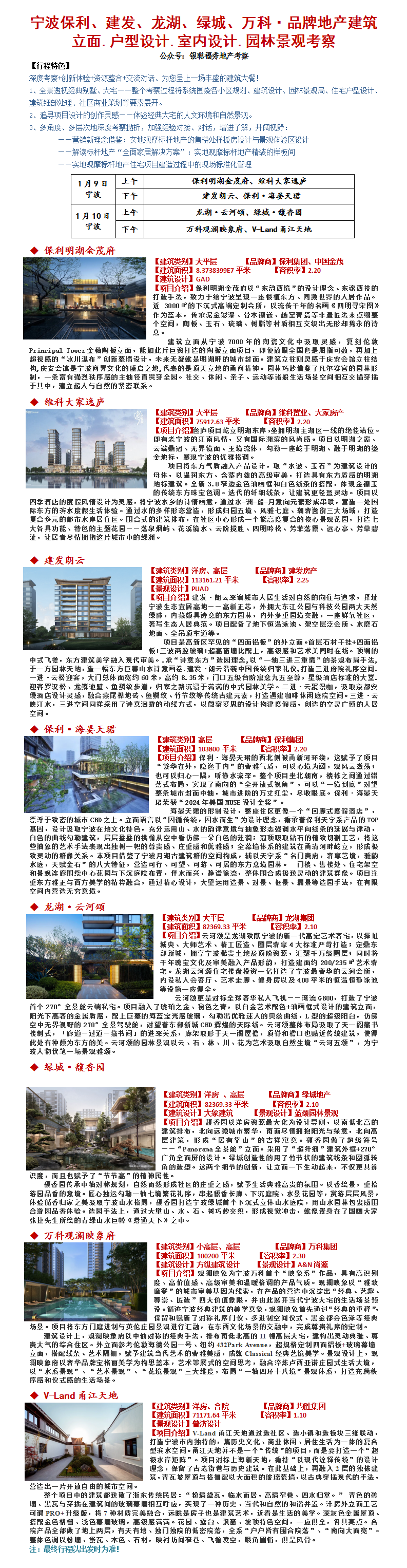 25年1月9-10日宁波保利、建发、龙湖、绿城、万科·品牌地产考察