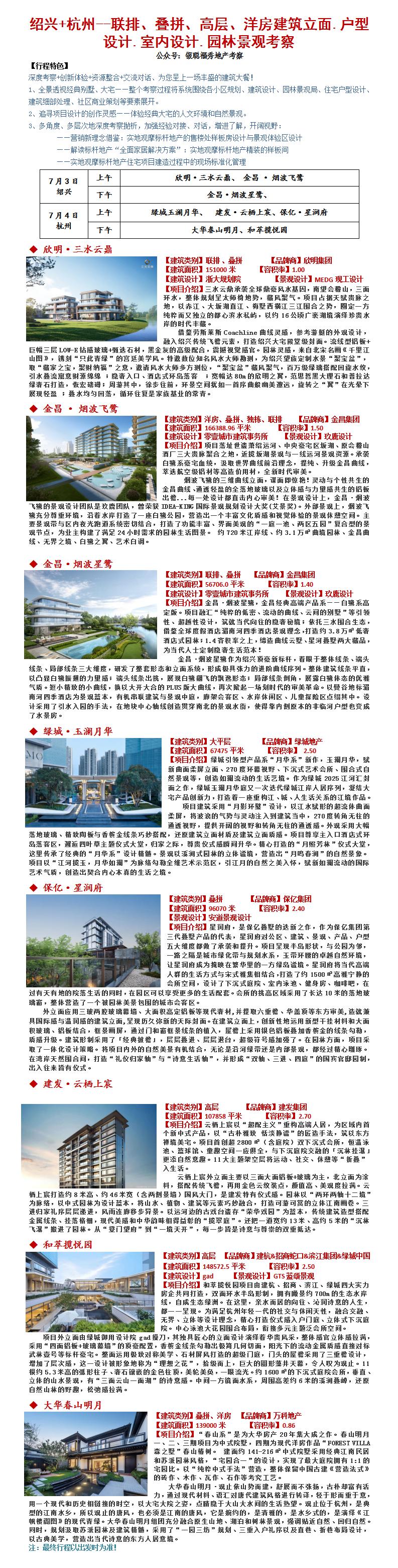 25年7月3-4日绍兴+杭州--联排、叠拼、高层、洋房建筑立面.户型设计.室内设计.园林景观考察