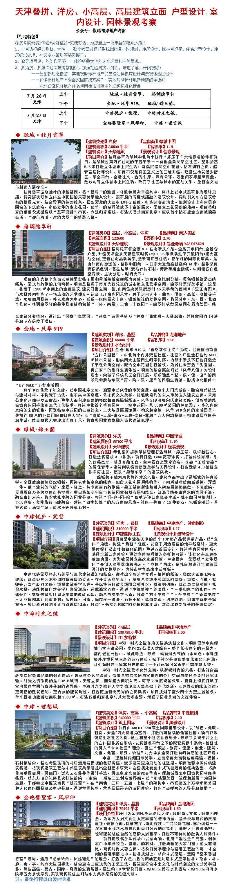 25年7月26-27日天津叠拼、洋房、小高层、高层建筑立面.户型设计.室内设计.园林景观考察