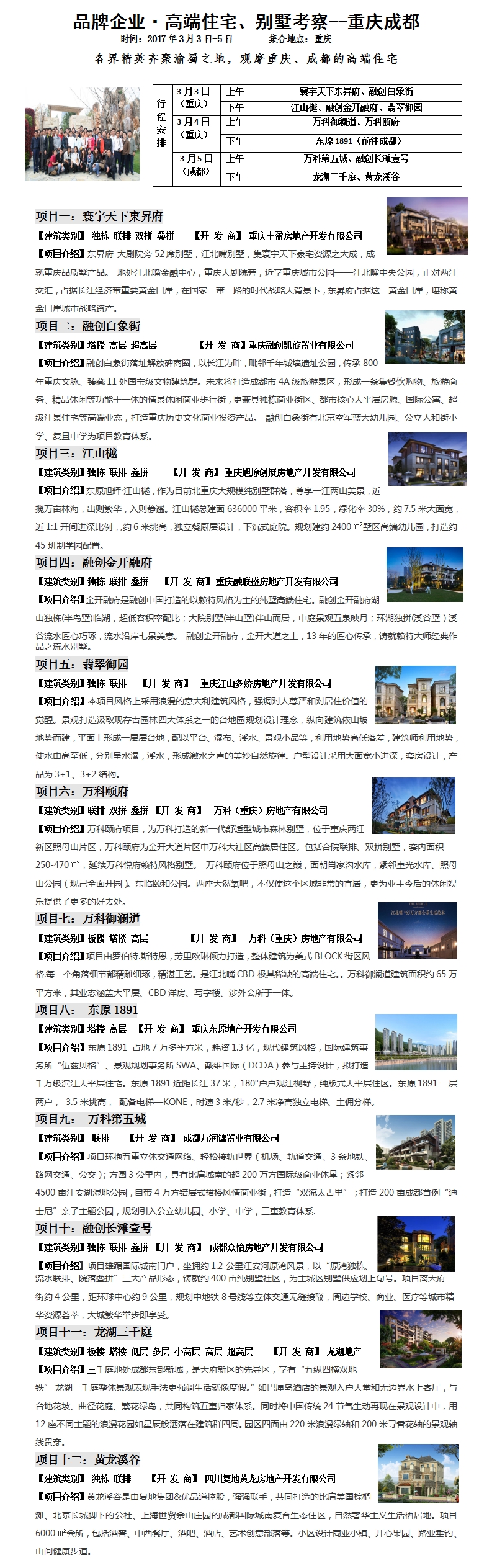 2017年3月3-5日重庆成都高端住宅、别墅考察