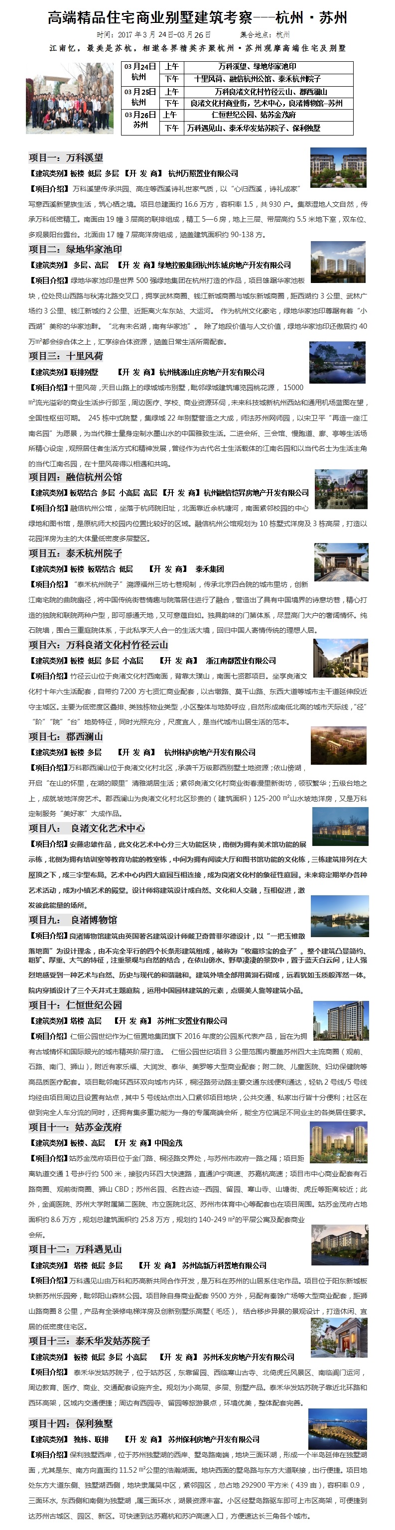 2017年3月24-26日杭州·苏州精品住宅商业别墅建筑考察