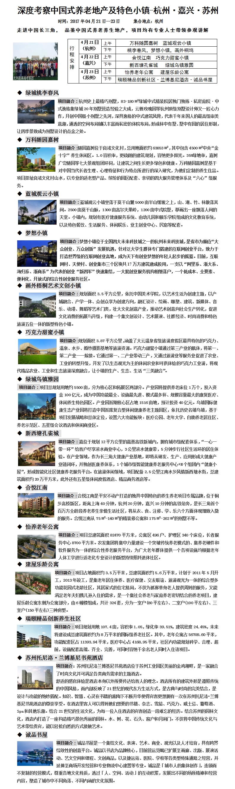 2017年04月21日-23日杭州嘉兴苏州中国式养老地产及江南特色小镇考察