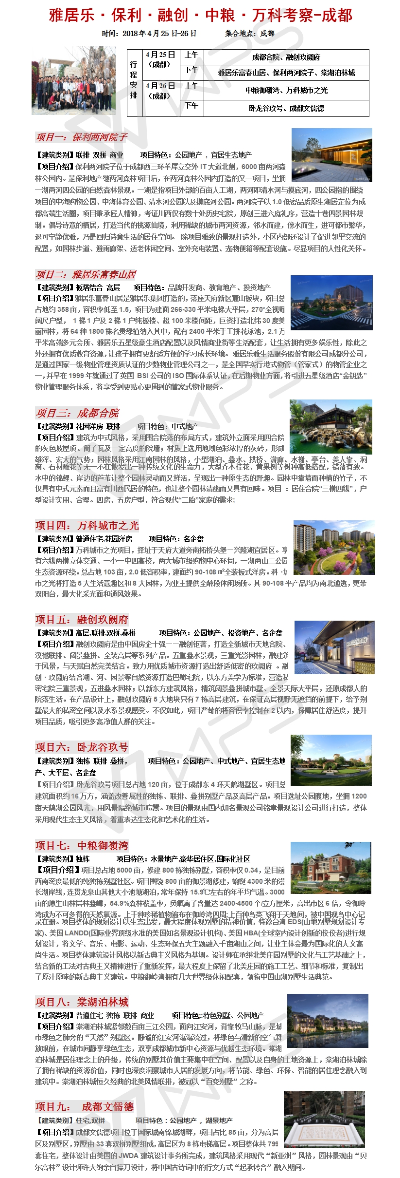 2018年4月25-26日成都融创万科雅居乐中粮地产考察