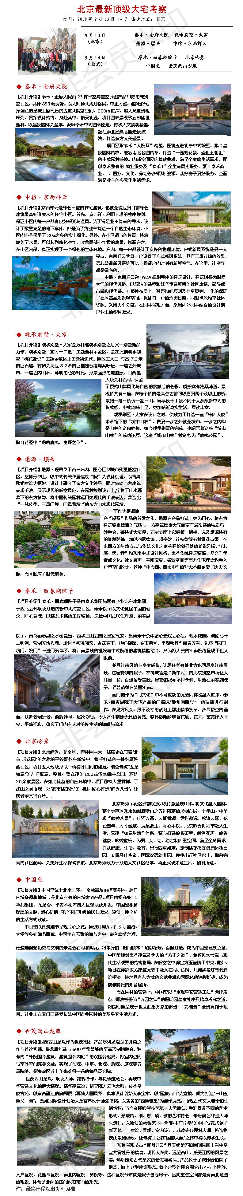 2018年9月13日-14日北京最新顶级大宅考察
