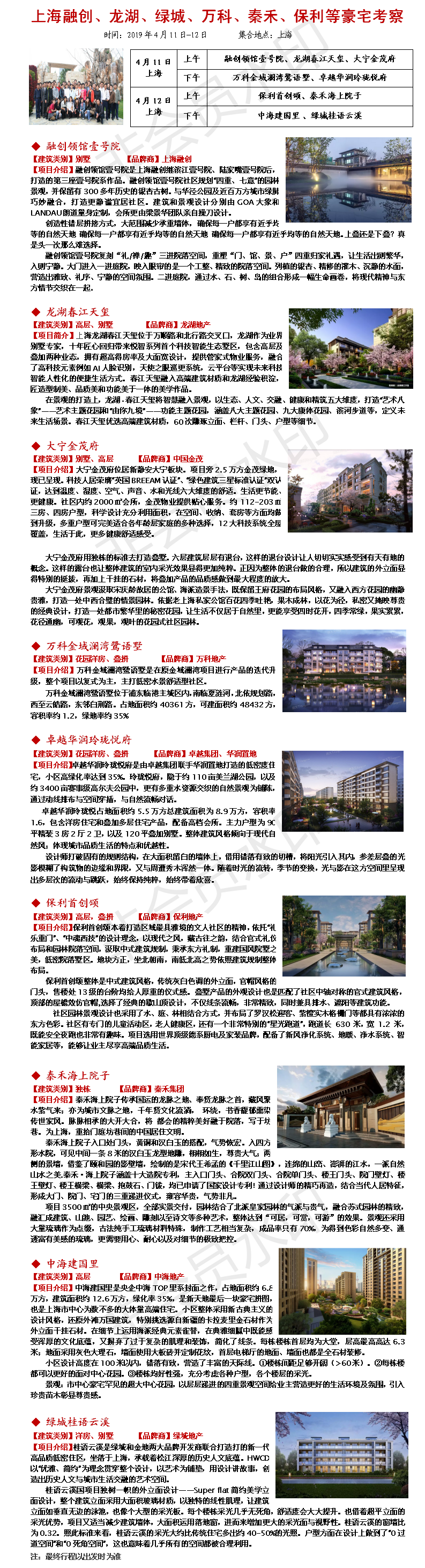 2019年4月11-12日上海融创、龙湖、绿城、万科、秦禾、保利系豪宅考察