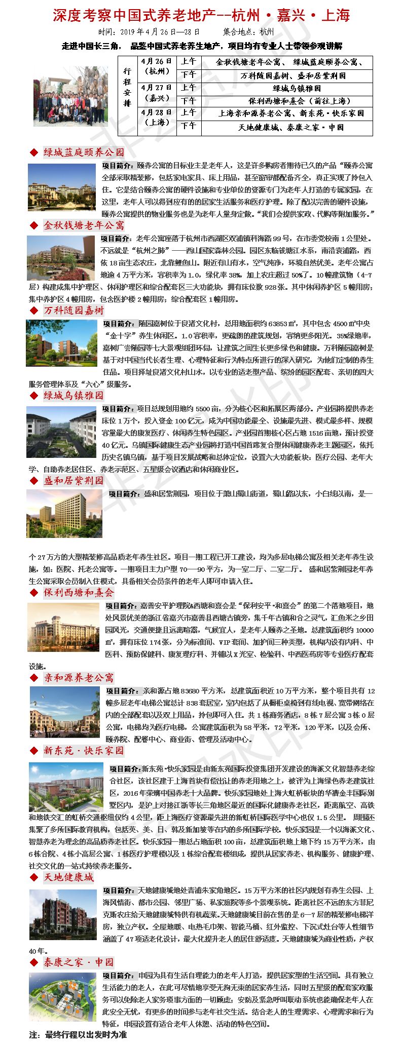 2019年4月26--28日深度考察中国式养老地产--杭州·嘉兴·上海