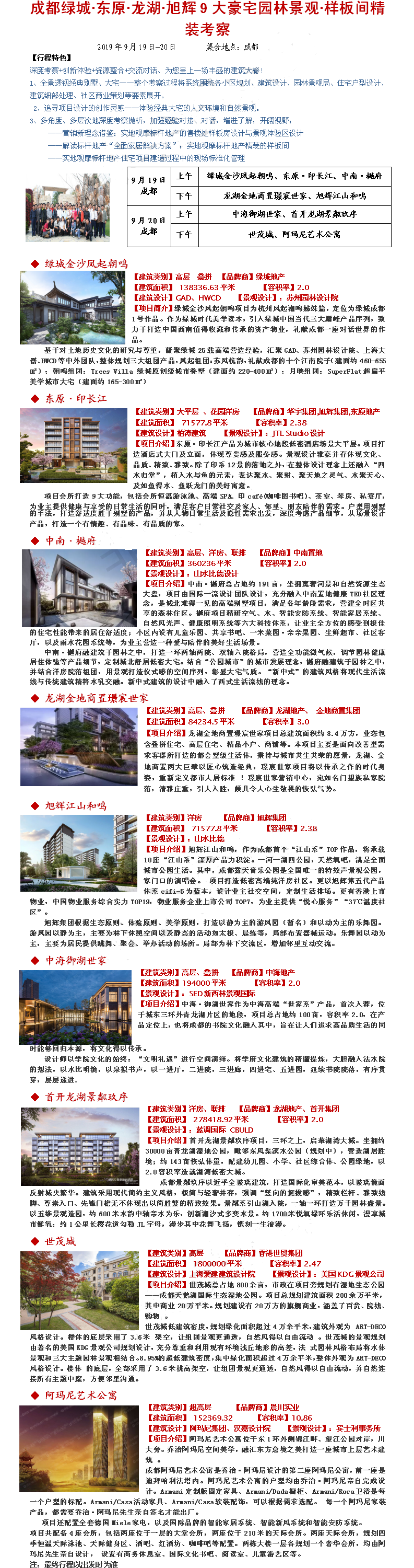 2019年9月19日-20日成都绿城·东原·龙湖·旭辉9大豪宅园林景观·样板间精装考察