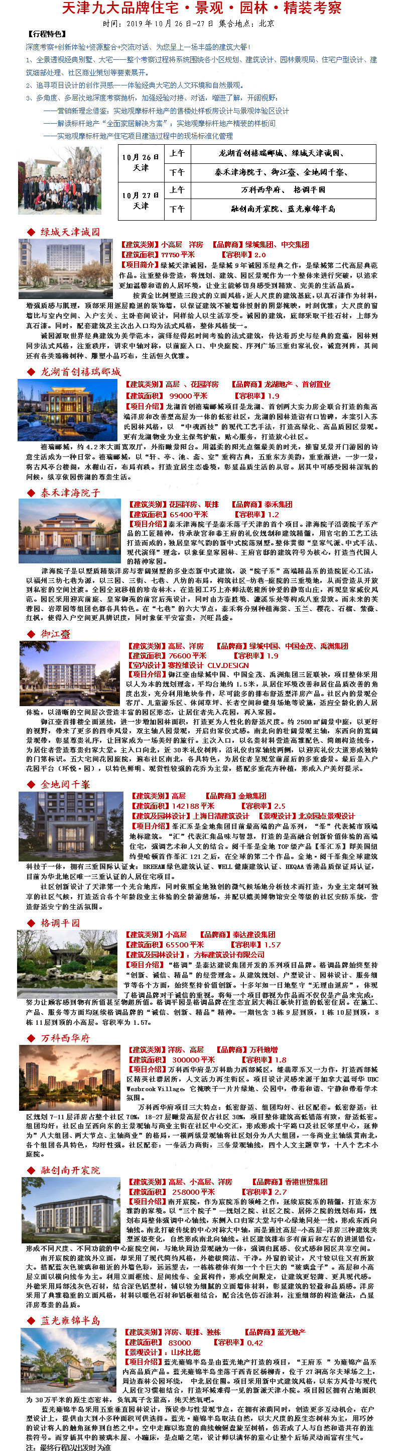 2019年10月26-27日天津九大品牌住宅·景观园林·室内设计考察