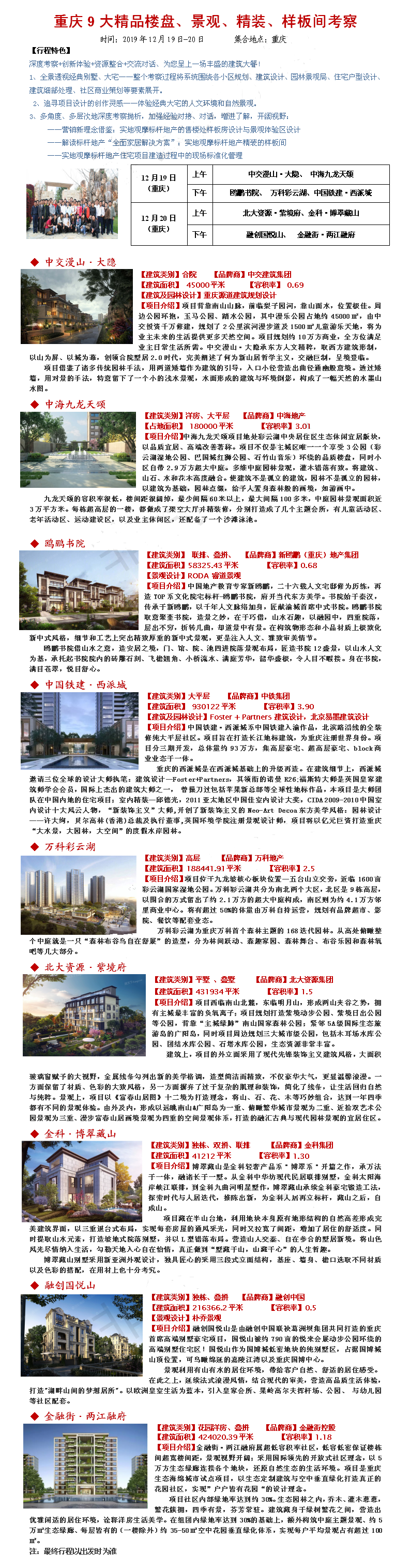 19年12月19-20日重庆9大精品楼盘、景观、精装考察