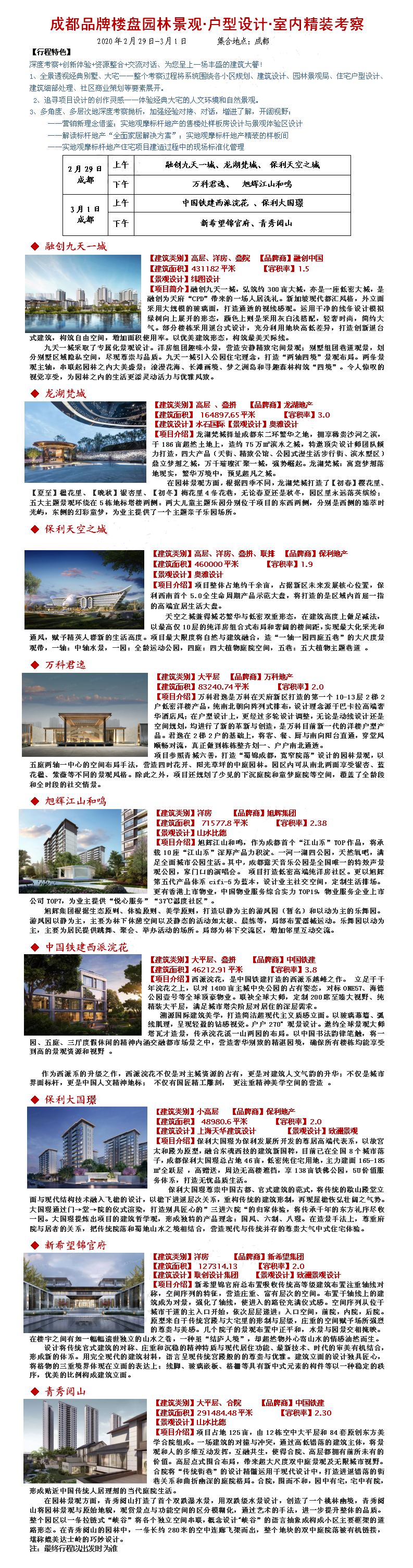 2020年2月29-3月1成都品牌楼盘园林景观·户型设计·室内精装考察