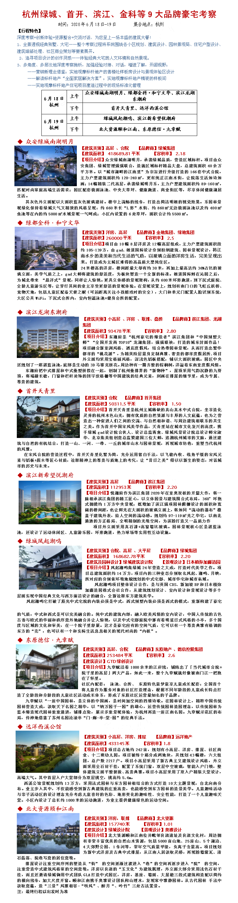 2020年6月18-19日杭州绿城、首开、滨江、金科等9大品牌豪宅考察