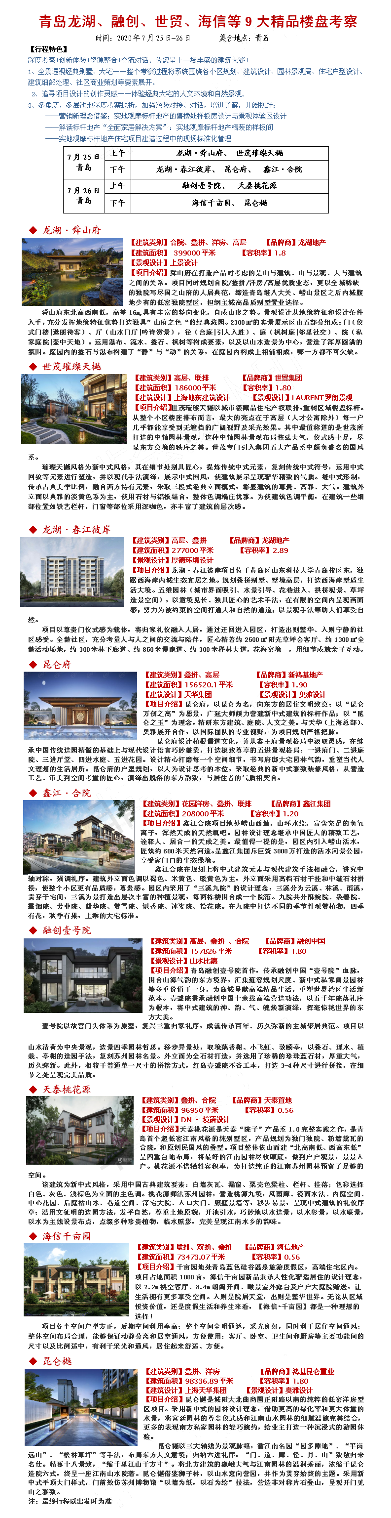 2020年7月25-26日青岛龙湖、融创、世贸、海信等9大精品楼盘考察