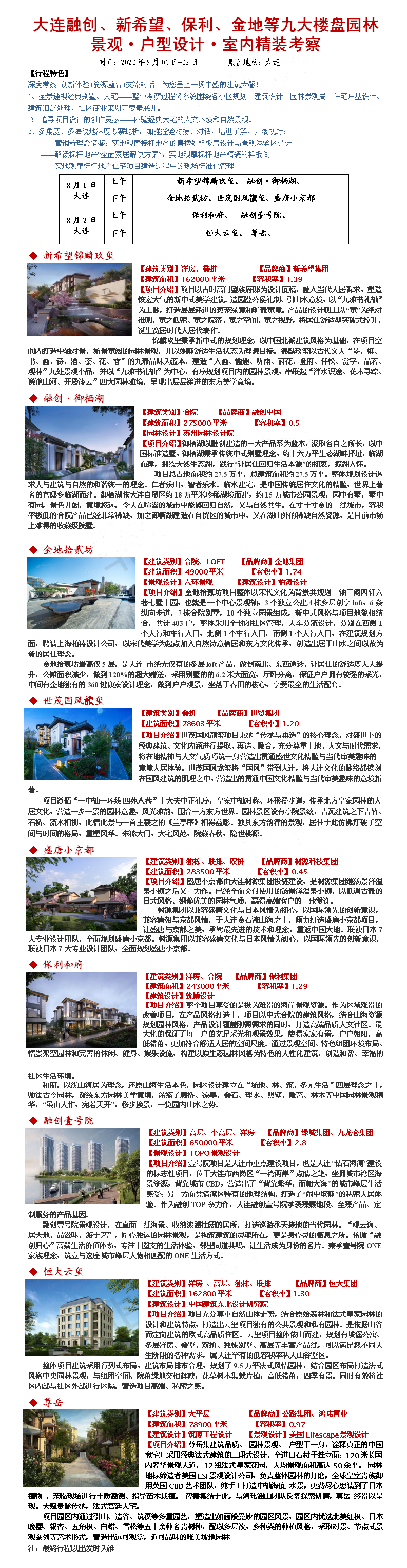 2020年8月1-2日大连融创、新希望、保利等九大楼盘园林景观·户型设计·室内精装考察