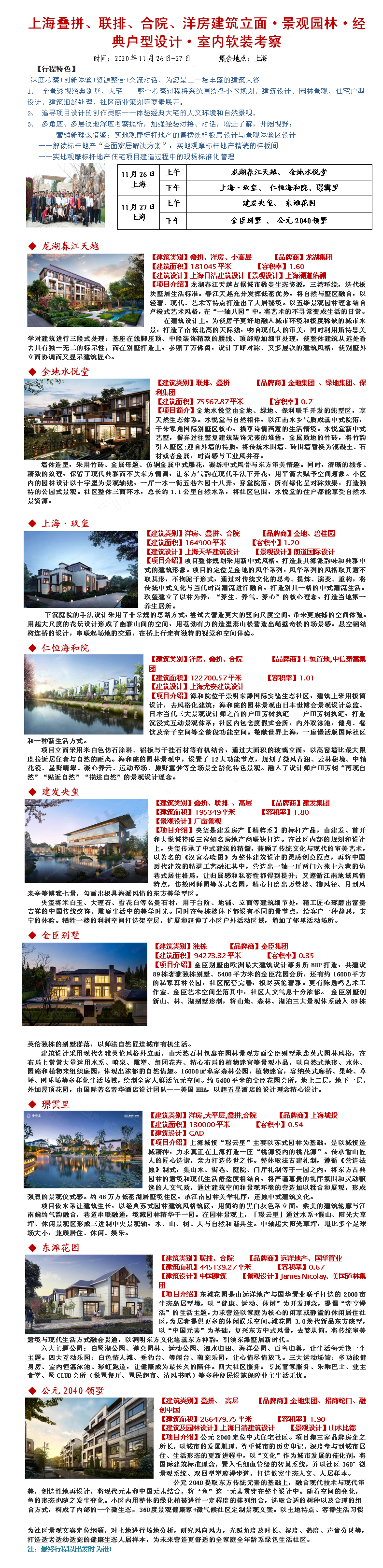 20年11月26-27日上海叠拼、联排、合院、洋房建筑立面·景观园林·经典户型设计·室内软装考察