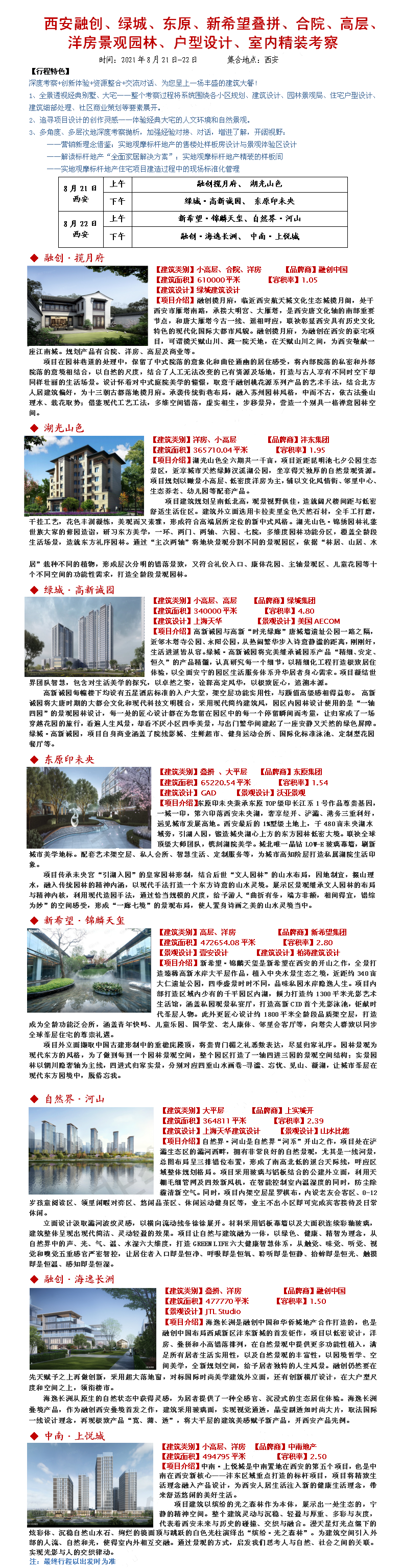 21年8月21-22西安叠拼、合院、高层、洋房景观园林、户型设计、室内精装考察