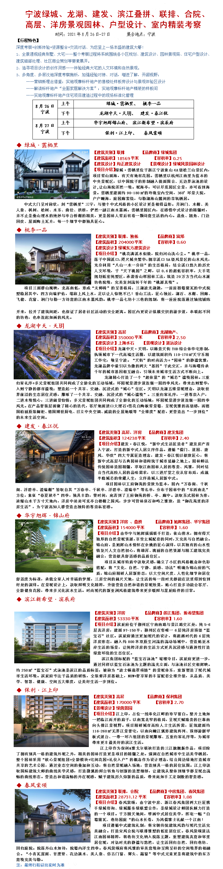 21年8月26-27宁波绿城、龙湖、建发、滨江叠拼、联排、合院、高层、洋房考察