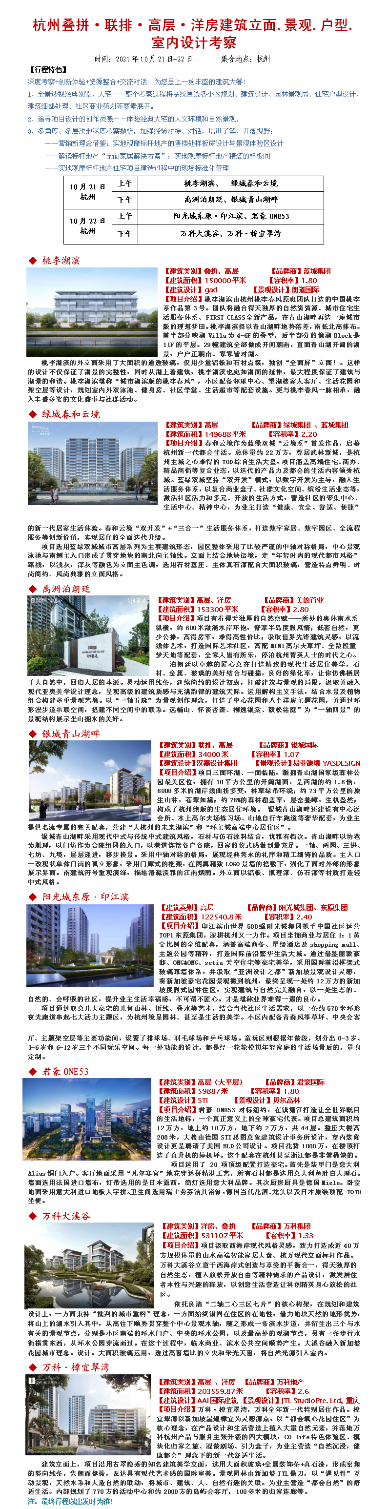 21年10月21-22日杭州叠拼·联排·高层·洋房建筑立面.景观.户型.室内设计考察