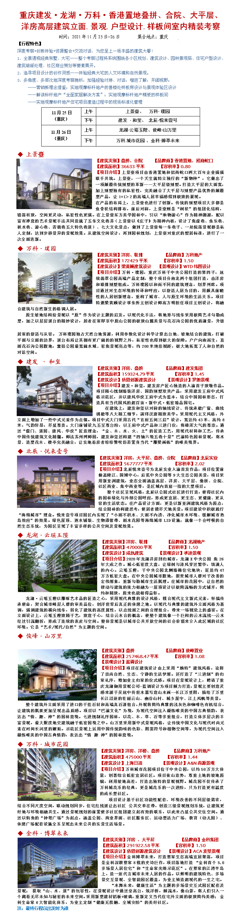 21年11月25-26重庆建发·龙湖·万科·香港置地叠拼、合院、大平层、洋房高层建筑地产考察