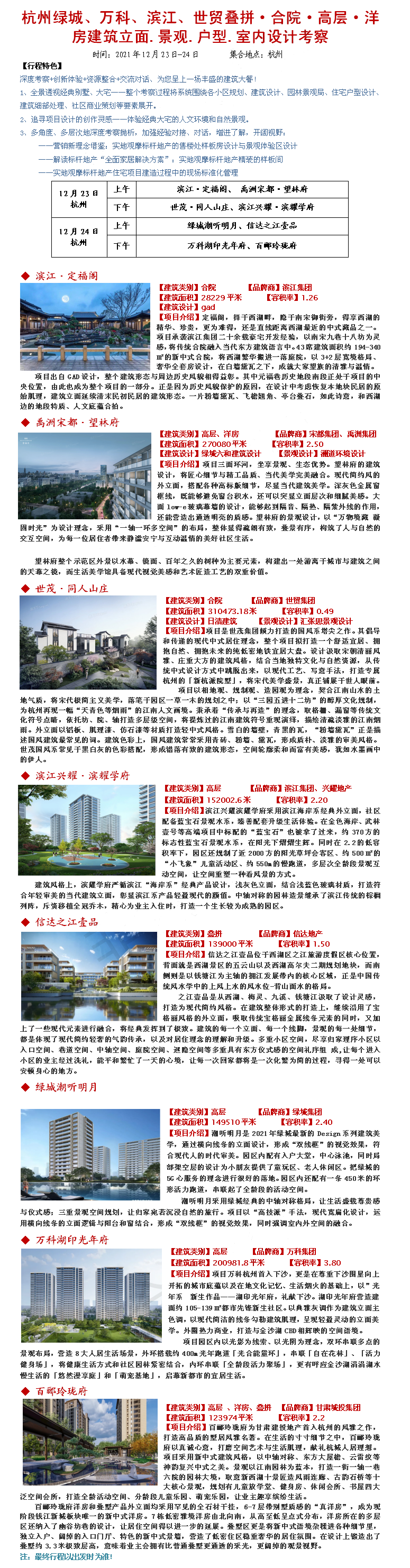 21年12月23-24杭州绿城、万科、滨江、世贸叠拼·合院·高层·洋房立面.景观.户型.室内设计考察