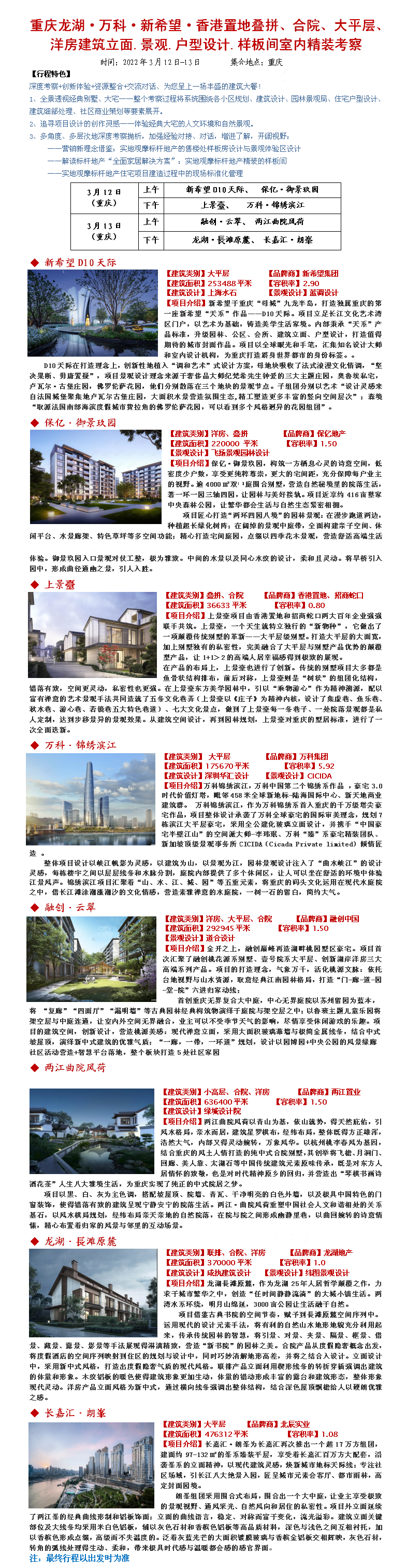 22年3月12-13重庆龙湖·万科·新希望·香港置地叠拼、合院、大平层、洋房建筑地产考察