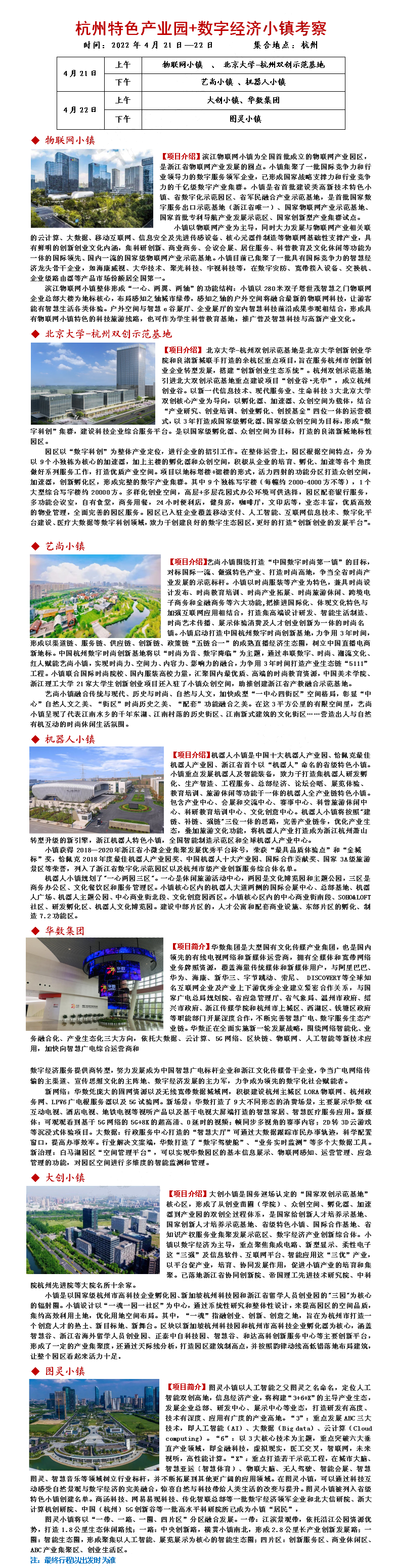 22年4月21-22日杭州特色产业园+数字经济小镇考察
