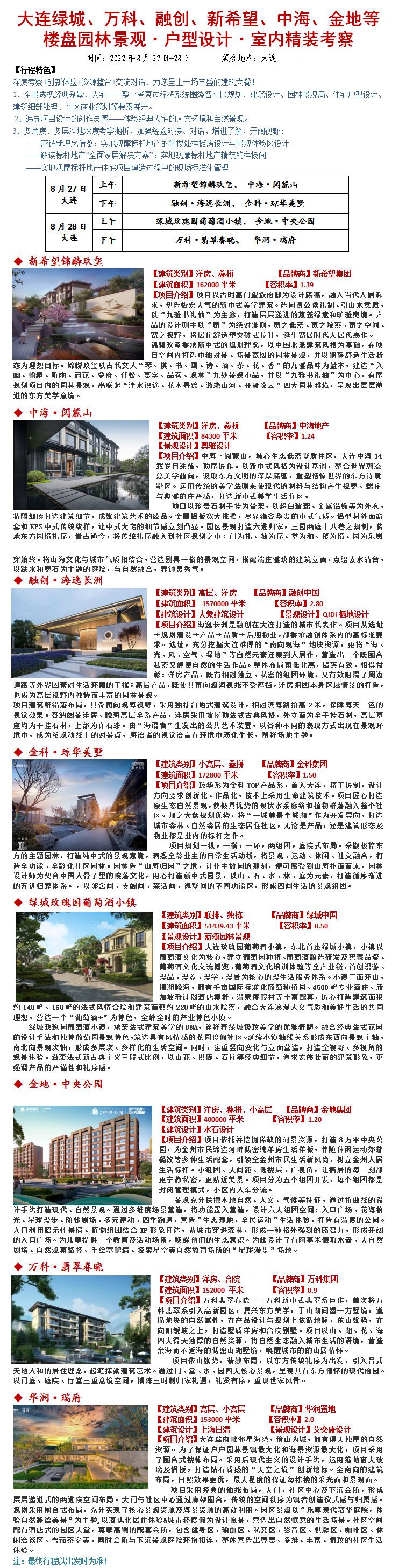 22年8月27-28日大连楼盘建筑立面·园林景观·户型设计·室内精装考