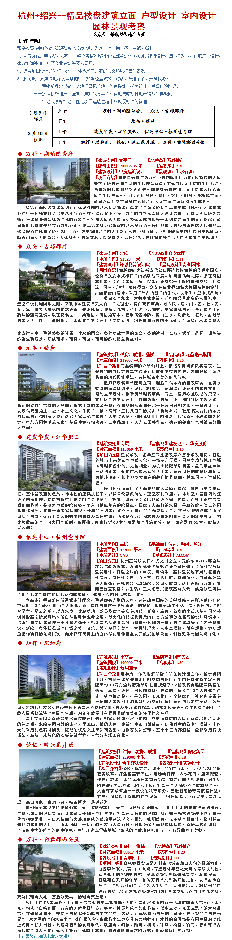 23年3月9-10杭州+绍兴--精品楼盘建筑立面.户型设计.室内设计.园林景观考察