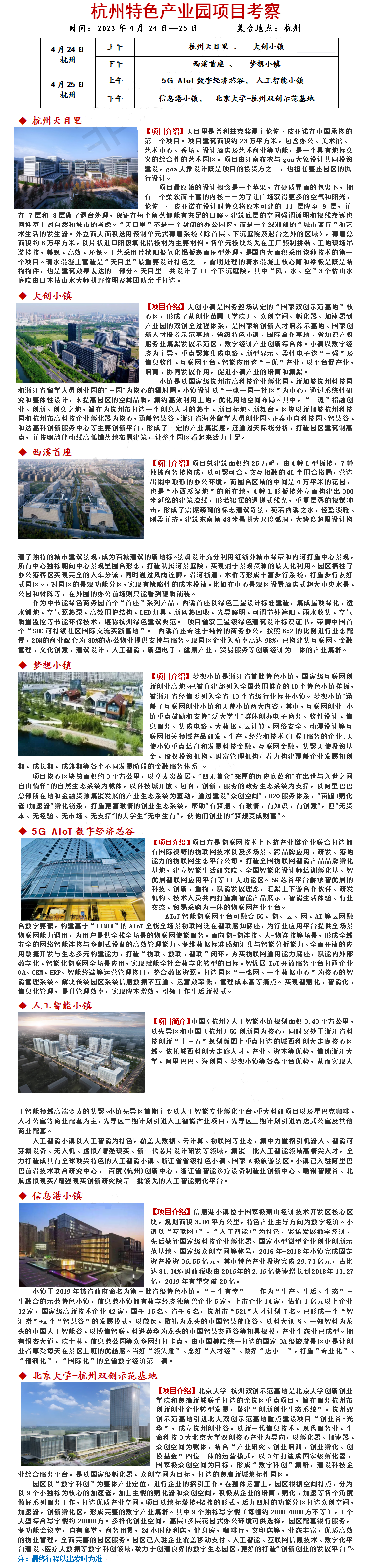 23年4月24-25日杭州特色产业园项目考察