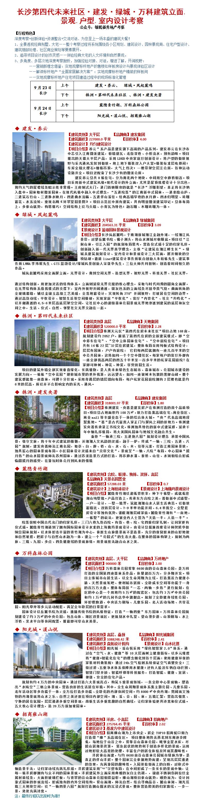 23年9月23-24日长沙第四代未来社区·建发·绿城·万科建筑立面.景观.户型.室内设计考察