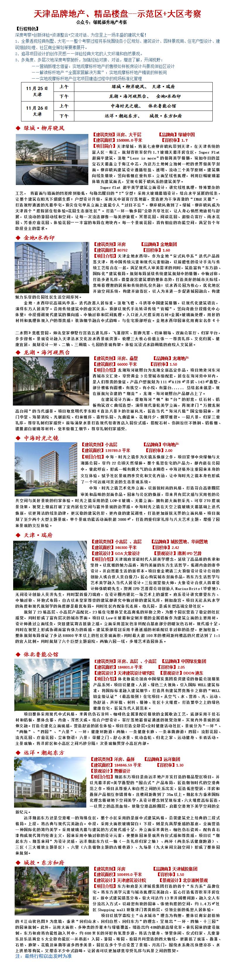 23年11月25-26天津品牌地产、精品楼盘--示范区+大区考察