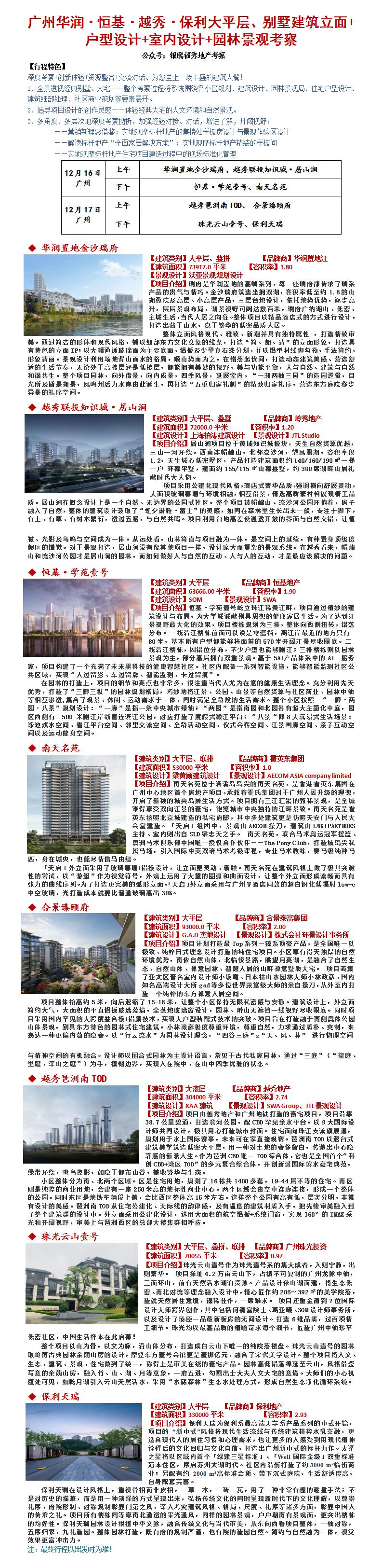 23年12月16-17日广州华润·恒基·越秀·保利大平层、别墅建筑立面+户型设计+室内设计+园林景观考察