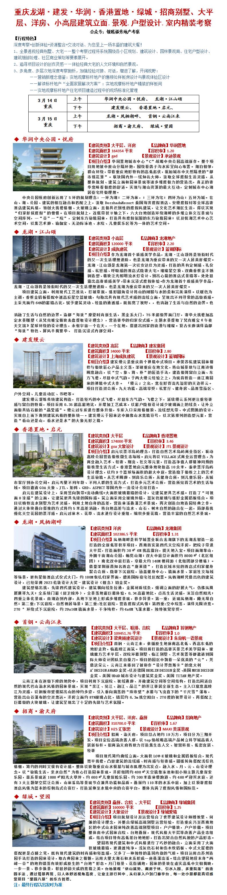 24年3月14-15日重庆龙湖·建发·华润·香港置地·绿城·招商别墅、大平层、洋房、小高层建筑立面.景观.户型设计.室内精装考察