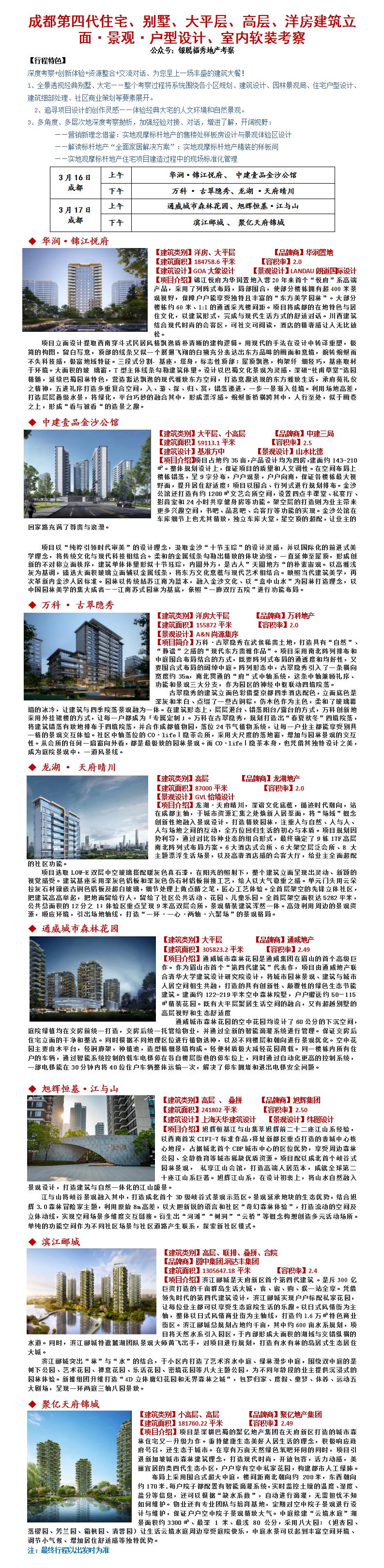 24年3月16-17日成都第四代住宅、别墅、大平层、高层、洋房建筑立面·景观·户型设计、室内软装考察