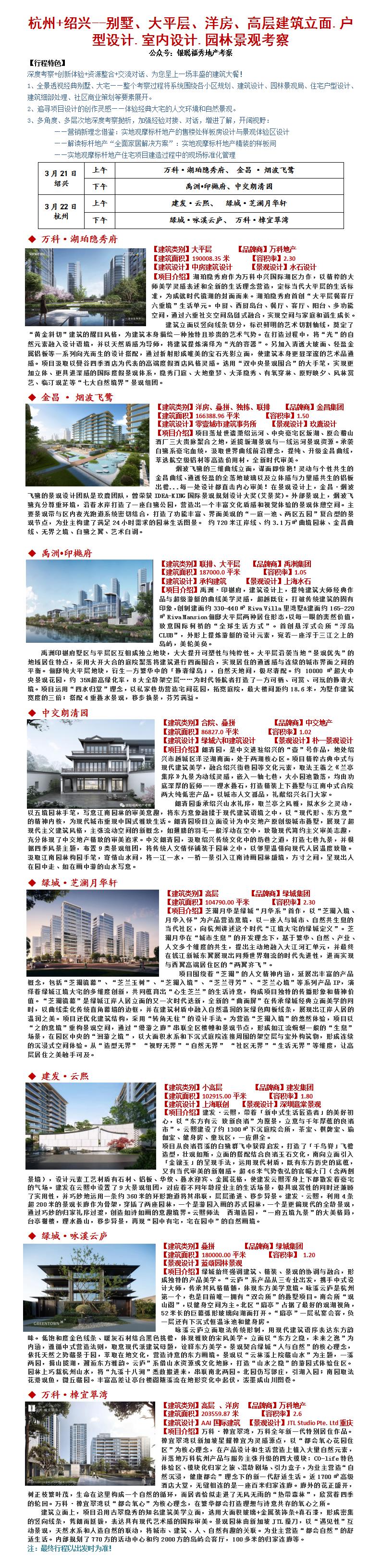 24年3月21-22日杭州+绍兴--别墅、大平层、洋房、高层建筑立面.户型设计.室内设计.园林景观考察