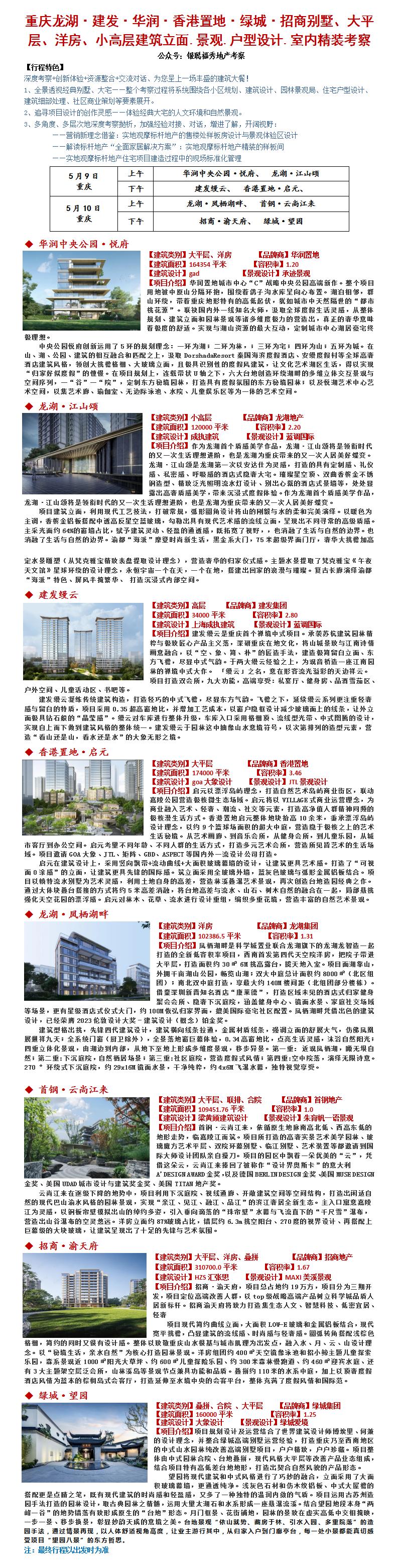 24年5月9-10重庆龙湖·建发·华润·香港置地·绿城·招商别墅、大平层、洋房、小高层建筑立面.景观.户型设计.室内精装考察