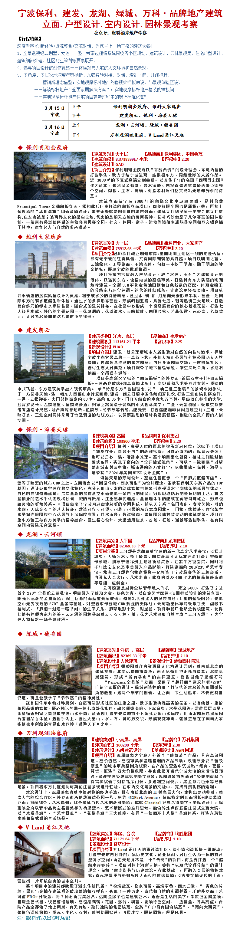 25年3月15-16日宁波保利、建发、龙湖、绿城、万科·品牌地产建筑立面.户型设计.室内设计.园林景观考察