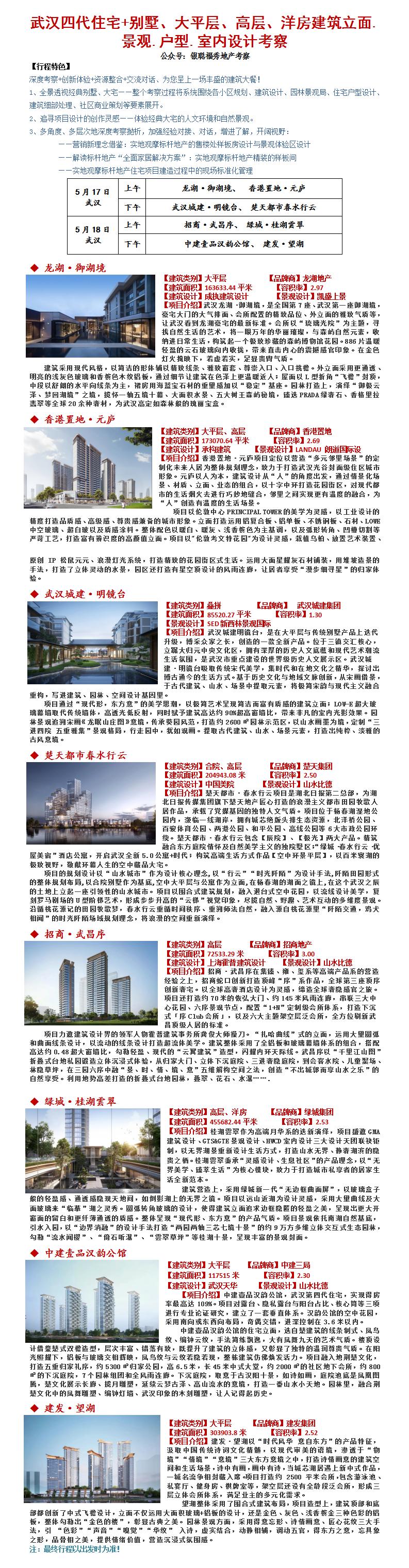 25年5月17-18日武汉四代住宅+别墅、大平层、高层、洋房建筑立面.景观.户型.室内设计考察