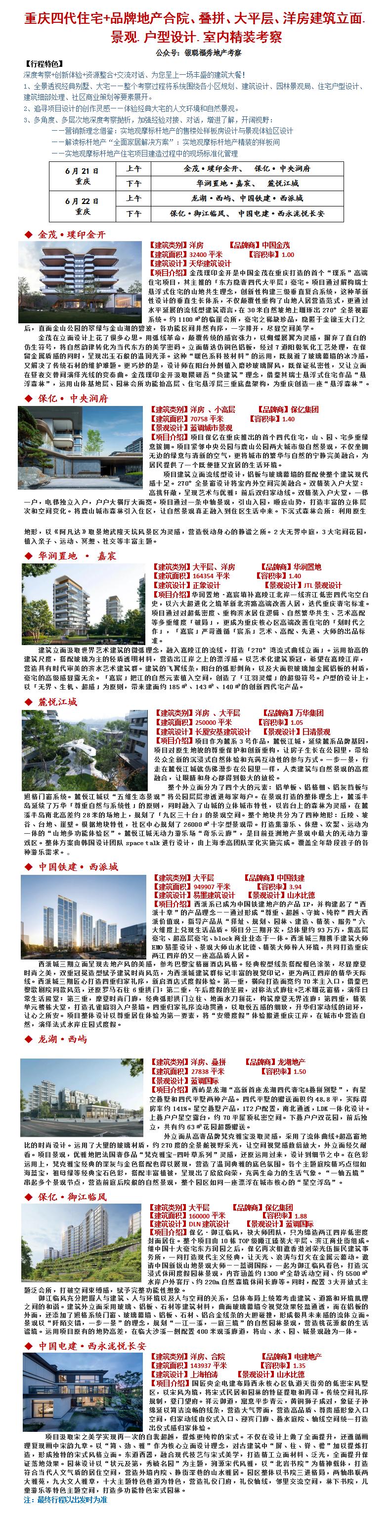 25年6月21-22日重庆四代住宅+品牌地产合院、叠拼、大平层、洋房建筑立面.景观.户型设计.室内精装考察